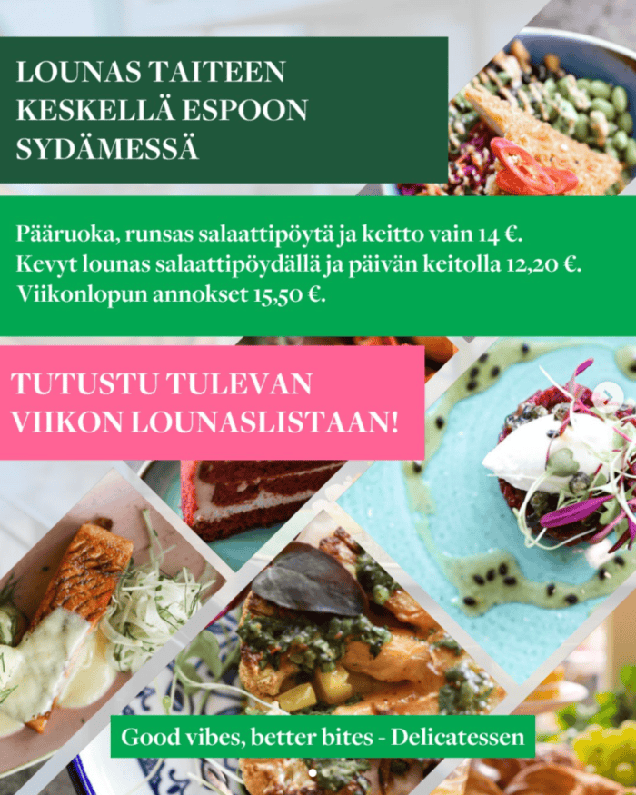Tarjolla päivän keitto+salaatti sekä lautasannos – nauti vaikka molemmat! Delicatessen WeeGee on lämminhenkinen kohtaamispaikka, jossa ruoka, ihmiset ja luovuus kohtaavat.